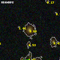 Black segments are analyzed here. Roll mouse over color images to view segments. Best viewed in a wide browser window (1200 pixels or more). Download SED & P(z) plots to view larger versions.