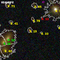 Black segments are analyzed here. Roll mouse over color images to view segments. Best viewed in a wide browser window (1200 pixels or more). Download SED & P(z) plots to view larger versions.