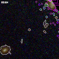Black segments are analyzed here. Roll mouse over color images to view segments. Best viewed in a wide browser window (1200 pixels or more). Download SED & P(z) plots to view larger versions.
