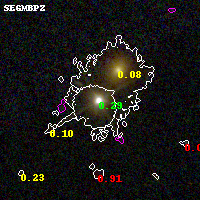 Black segments are analyzed here. Roll mouse over color images to view segments. Best viewed in a wide browser window (1200 pixels or more). Download SED & P(z) plots to view larger versions.