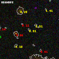 Black segments are analyzed here. Roll mouse over color images to view segments. Best viewed in a wide browser window (1200 pixels or more). Download SED & P(z) plots to view larger versions.