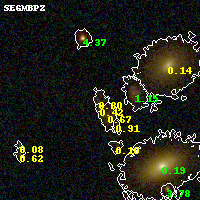 Black segments are analyzed here. Roll mouse over color images to view segments. Best viewed in a wide browser window (1200 pixels or more). Download SED & P(z) plots to view larger versions.