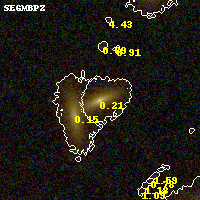 Black segments are analyzed here. Roll mouse over color images to view segments. Best viewed in a wide browser window (1200 pixels or more). Download SED & P(z) plots to view larger versions.