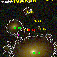 Black segments are analyzed here. Roll mouse over color images to view segments. Best viewed in a wide browser window (1200 pixels or more). Download SED & P(z) plots to view larger versions.
