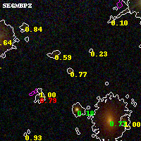 Black segments are analyzed here. Roll mouse over color images to view segments. Best viewed in a wide browser window (1200 pixels or more). Download SED & P(z) plots to view larger versions.