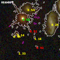 Black segments are analyzed here. Roll mouse over color images to view segments. Best viewed in a wide browser window (1200 pixels or more). Download SED & P(z) plots to view larger versions.