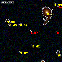 Black segments are analyzed here. Roll mouse over color images to view segments. Best viewed in a wide browser window (1200 pixels or more). Download SED & P(z) plots to view larger versions.