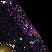 Black segments are analyzed here. Roll mouse over color images to view segments. Best viewed in a wide browser window (1200 pixels or more). Download SED & P(z) plots to view larger versions.