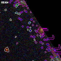 Black segments are analyzed here. Roll mouse over color images to view segments. Best viewed in a wide browser window (1200 pixels or more). Download SED & P(z) plots to view larger versions.
