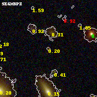 Black segments are analyzed here. Roll mouse over color images to view segments. Best viewed in a wide browser window (1200 pixels or more). Download SED & P(z) plots to view larger versions.