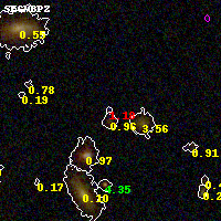 Black segments are analyzed here. Roll mouse over color images to view segments. Best viewed in a wide browser window (1200 pixels or more). Download SED & P(z) plots to view larger versions.