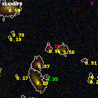 Black segments are analyzed here. Roll mouse over color images to view segments. Best viewed in a wide browser window (1200 pixels or more). Download SED & P(z) plots to view larger versions.