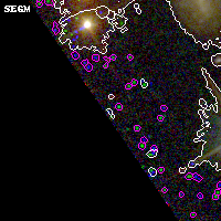 Black segments are analyzed here. Roll mouse over color images to view segments. Best viewed in a wide browser window (1200 pixels or more). Download SED & P(z) plots to view larger versions.