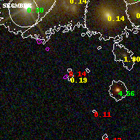 Black segments are analyzed here. Roll mouse over color images to view segments. Best viewed in a wide browser window (1200 pixels or more). Download SED & P(z) plots to view larger versions.