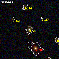 Black segments are analyzed here. Roll mouse over color images to view segments. Best viewed in a wide browser window (1200 pixels or more). Download SED & P(z) plots to view larger versions.