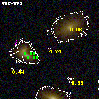 Black segments are analyzed here. Roll mouse over color images to view segments. Best viewed in a wide browser window (1200 pixels or more). Download SED & P(z) plots to view larger versions.