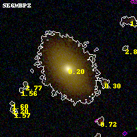 Object #456   x,y = (5679, 1187)   RA, Dec = (16:15:36.648, -6:11:13.56) = (243.90270, -6.18710)   BPZ = 0.204 [0.179--0.268]   type = 1.60 (Ell6_A_0 - Ell7_A_0)   chisq2 = 0.02   ODDS = 0.95   z_cluster = 0.203