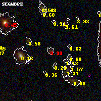 Black segments are analyzed here. Roll mouse over color images to view segments. Best viewed in a wide browser window (1200 pixels or more). Download SED & P(z) plots to view larger versions.