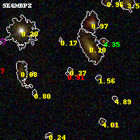 Black segments are analyzed here. Roll mouse over color images to view segments. Best viewed in a wide browser window (1200 pixels or more). Download SED & P(z) plots to view larger versions.