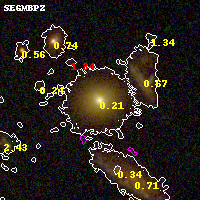 Black segments are analyzed here. Roll mouse over color images to view segments. Best viewed in a wide browser window (1200 pixels or more). Download SED & P(z) plots to view larger versions.