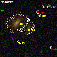 Black segments are analyzed here. Roll mouse over color images to view segments. Best viewed in a wide browser window (1200 pixels or more). Download SED & P(z) plots to view larger versions.