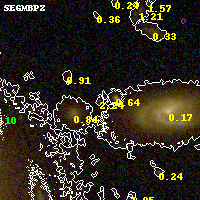 Black segments are analyzed here. Roll mouse over color images to view segments. Best viewed in a wide browser window (1200 pixels or more). Download SED & P(z) plots to view larger versions.