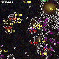 Black segments are analyzed here. Roll mouse over color images to view segments. Best viewed in a wide browser window (1200 pixels or more). Download SED & P(z) plots to view larger versions.