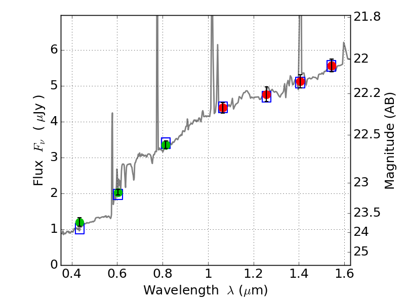 Object #4896   x,y = (3279, 3291)   RA, Dec = (16:15:46.296, -6:09:07.20) = (243.94290, -6.15200)   BPZ = 0.555 [0.116--0.662]   type = 8.00 (SB1_B10)   chisq2 = 0.04   ODDS = 0.57   z_cluster = 0.203
