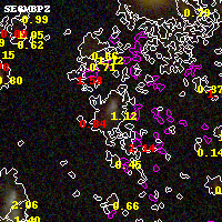 Black segments are analyzed here. Roll mouse over color images to view segments. Best viewed in a wide browser window (1200 pixels or more). Download SED & P(z) plots to view larger versions.