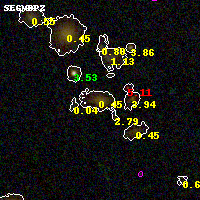Black segments are analyzed here. Roll mouse over color images to view segments. Best viewed in a wide browser window (1200 pixels or more). Download SED & P(z) plots to view larger versions.