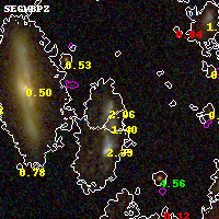 Black segments are analyzed here. Roll mouse over color images to view segments. Best viewed in a wide browser window (1200 pixels or more). Download SED & P(z) plots to view larger versions.