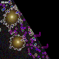 Black segments are analyzed here. Roll mouse over color images to view segments. Best viewed in a wide browser window (1200 pixels or more). Download SED & P(z) plots to view larger versions.