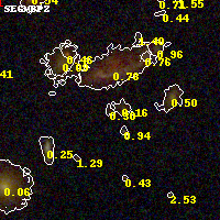Black segments are analyzed here. Roll mouse over color images to view segments. Best viewed in a wide browser window (1200 pixels or more). Download SED & P(z) plots to view larger versions.