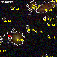 Black segments are analyzed here. Roll mouse over color images to view segments. Best viewed in a wide browser window (1200 pixels or more). Download SED & P(z) plots to view larger versions.