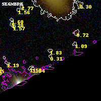 Black segments are analyzed here. Roll mouse over color images to view segments. Best viewed in a wide browser window (1200 pixels or more). Download SED & P(z) plots to view larger versions.