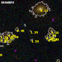 Black segments are analyzed here. Roll mouse over color images to view segments. Best viewed in a wide browser window (1200 pixels or more). Download SED & P(z) plots to view larger versions.