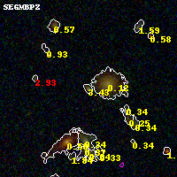 Black segments are analyzed here. Roll mouse over color images to view segments. Best viewed in a wide browser window (1200 pixels or more). Download SED & P(z) plots to view larger versions.