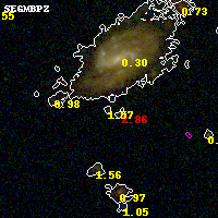 Black segments are analyzed here. Roll mouse over color images to view segments. Best viewed in a wide browser window (1200 pixels or more). Download SED & P(z) plots to view larger versions.