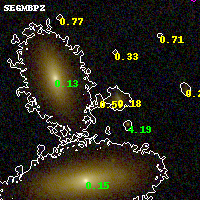 Black segments are analyzed here. Roll mouse over color images to view segments. Best viewed in a wide browser window (1200 pixels or more). Download SED & P(z) plots to view larger versions.
