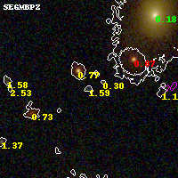 Black segments are analyzed here. Roll mouse over color images to view segments. Best viewed in a wide browser window (1200 pixels or more). Download SED & P(z) plots to view larger versions.