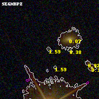 Black segments are analyzed here. Roll mouse over color images to view segments. Best viewed in a wide browser window (1200 pixels or more). Download SED & P(z) plots to view larger versions.
