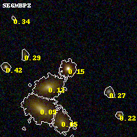 Black segments are analyzed here. Roll mouse over color images to view segments. Best viewed in a wide browser window (1200 pixels or more). Download SED & P(z) plots to view larger versions.