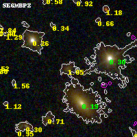 Black segments are analyzed here. Roll mouse over color images to view segments. Best viewed in a wide browser window (1200 pixels or more). Download SED & P(z) plots to view larger versions.