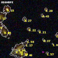 Black segments are analyzed here. Roll mouse over color images to view segments. Best viewed in a wide browser window (1200 pixels or more). Download SED & P(z) plots to view larger versions.