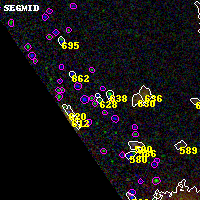Black segments are analyzed here. Roll mouse over color images to view segments. Best viewed in a wide browser window (1200 pixels or more). Download SED & P(z) plots to view larger versions.