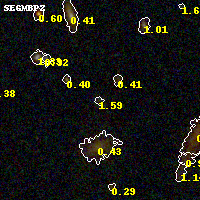 Black segments are analyzed here. Roll mouse over color images to view segments. Best viewed in a wide browser window (1200 pixels or more). Download SED & P(z) plots to view larger versions.