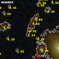 Black segments are analyzed here. Roll mouse over color images to view segments. Best viewed in a wide browser window (1200 pixels or more). Download SED & P(z) plots to view larger versions.