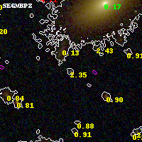Black segments are analyzed here. Roll mouse over color images to view segments. Best viewed in a wide browser window (1200 pixels or more). Download SED & P(z) plots to view larger versions.