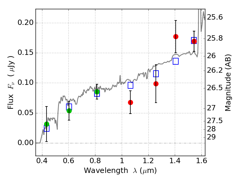 Object #6495   x,y = (4470, 2465)   RA, Dec = (16:15:41.520, -6:09:56.88) = (243.92300, -6.16580)   BPZ = 3.247 [0.185--3.990]   type = 8.10 (SB1_B10 - SB2_B10)   chisq2 = 0.51   ODDS = 0.16   z_cluster = 0.203