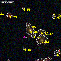 Black segments are analyzed here. Roll mouse over color images to view segments. Best viewed in a wide browser window (1200 pixels or more). Download SED & P(z) plots to view larger versions.